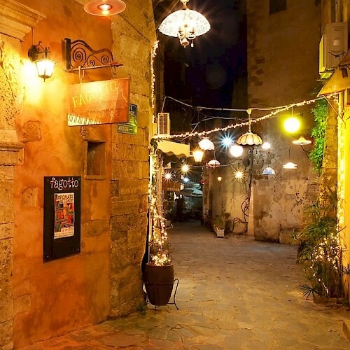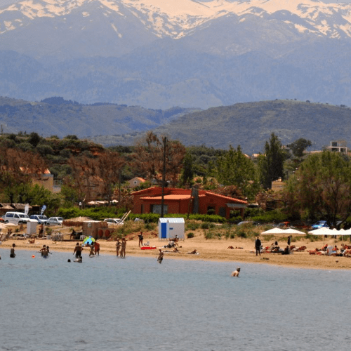 It is an area in front of the beach and can be found by following the coastal road, behind the Venetian Port to the west.